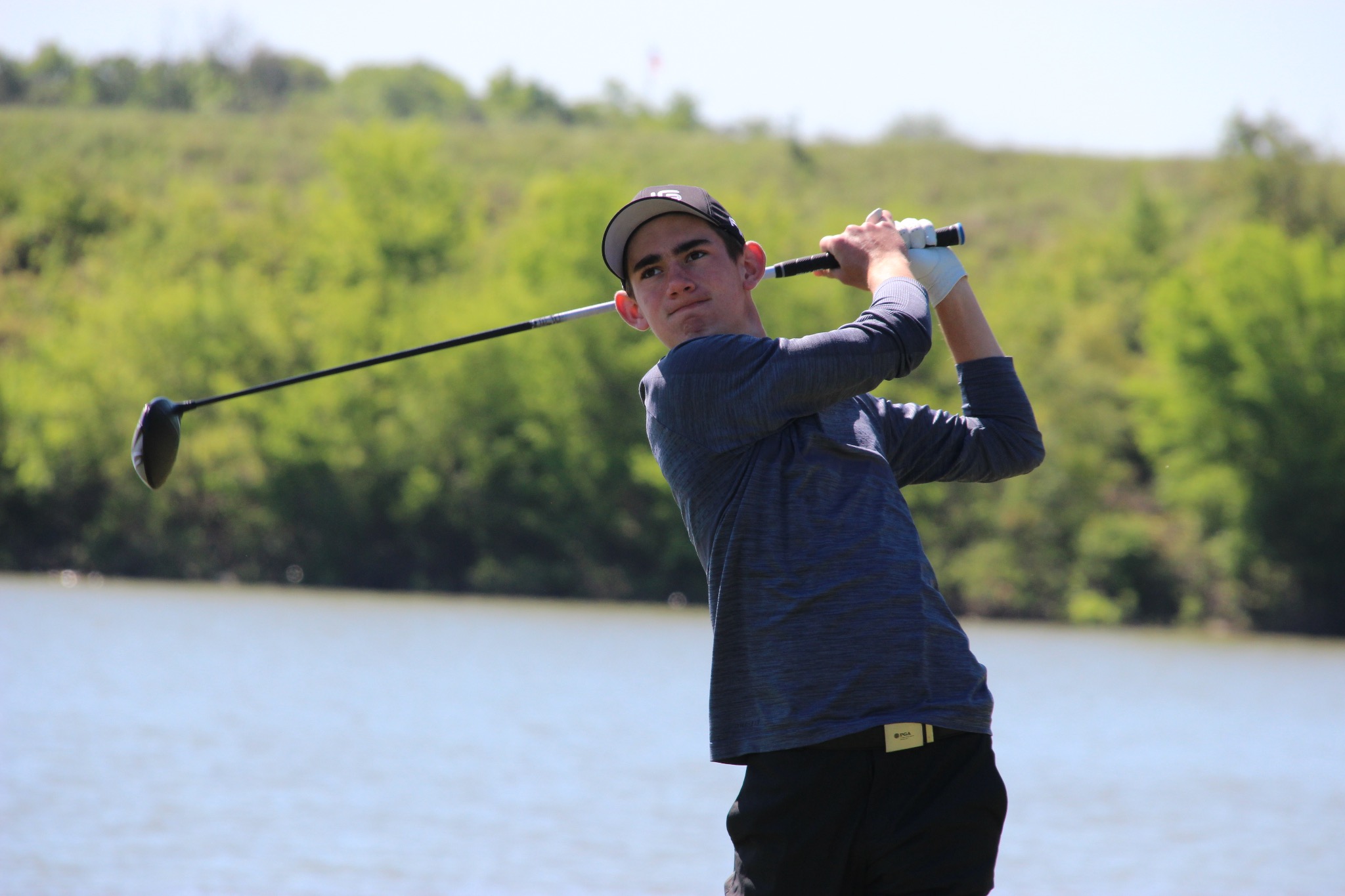 AJGA Golfer taking swing on the back nine